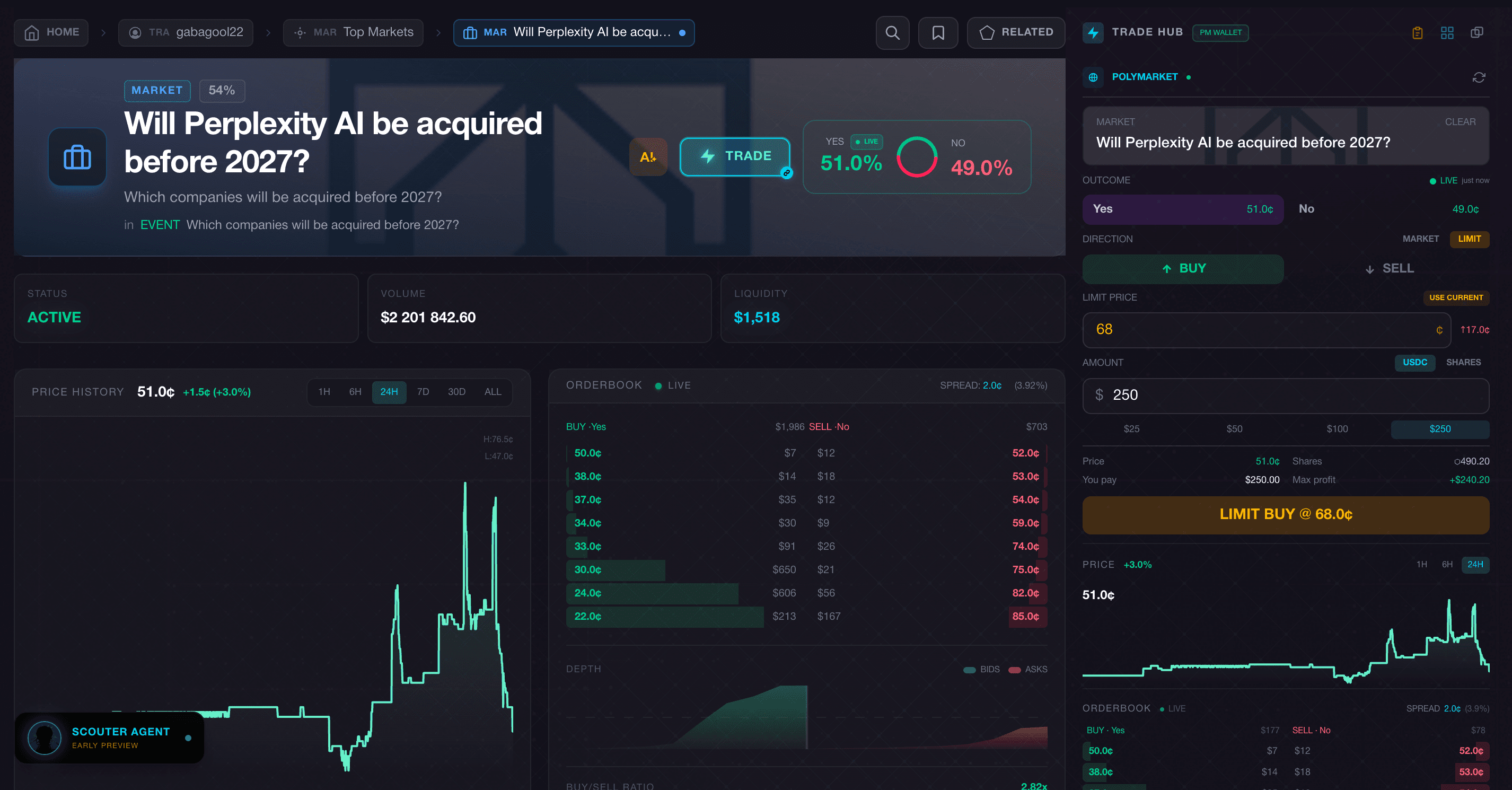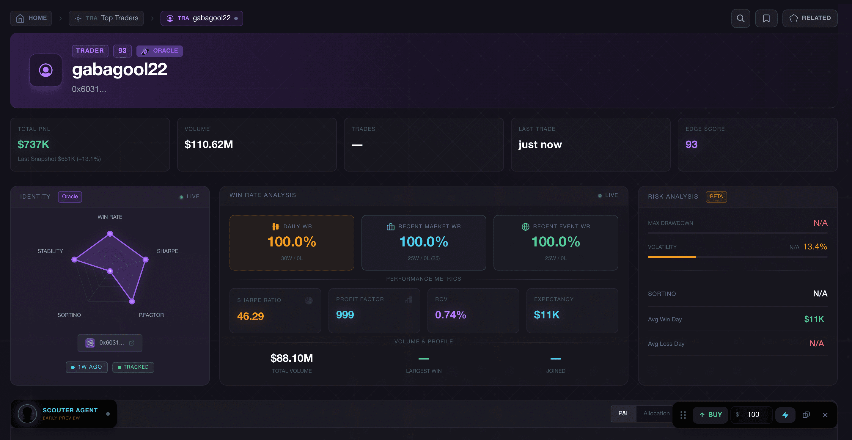 Track individual wallets and institutional players. Analyze their win rates, PnL, and historical activity to identify the "smart money" and copy high-conviction trades.